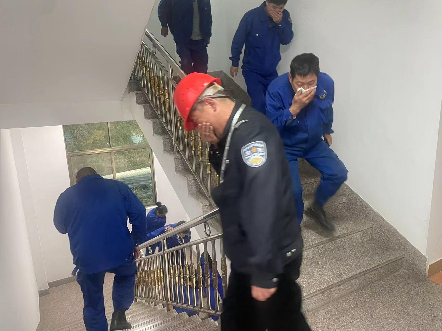 演練正式開始,模擬員工宿舍濃煙升起,火警報警聲響起,全體員工按照《消防應(yīng)急疏散預(yù)案》的要求,彎著腰,捂著口鼻,按指定安全消防通道,有序撤離至安全地點(diǎn)。