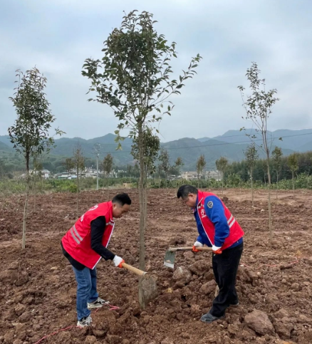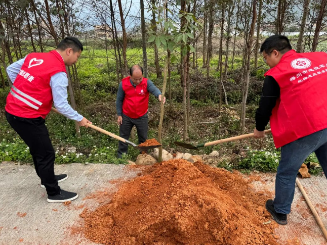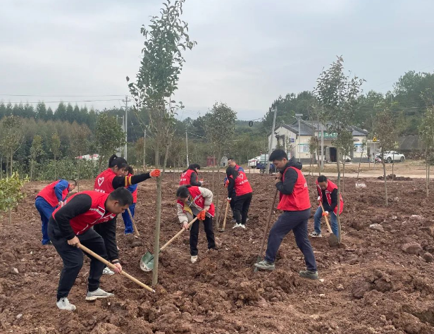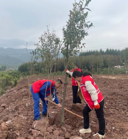 植樹現(xiàn)場,大家干勁十足,揮鍬鏟土、扶樹定根、培實新土,澆水灌溉,用心種下一顆顆樹苗。在全體人員的團結(jié)協(xié)作下,共種下樹苗數(shù)十顆,以實際行動踐行“綠水青山就是金山銀山”的生態(tài)文明理念,為推動家鄉(xiāng)綠化、打造綠美生態(tài)貢獻一份力量。